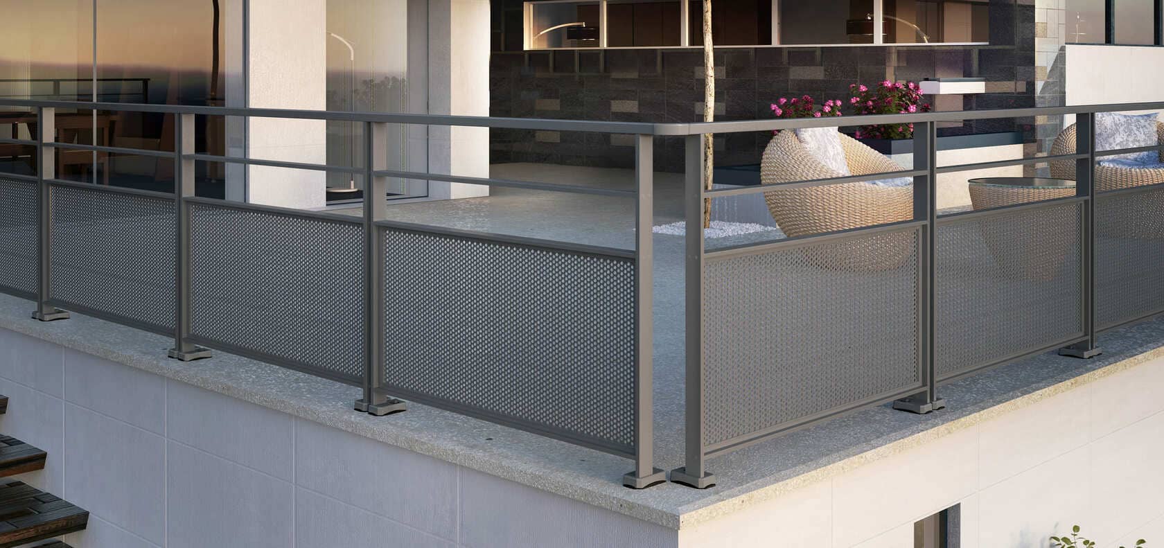 Modèles disponibles en version remplissage avec panneaux en verre et en version à  barreaudage.
